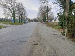 La première phase du chantier consistant à reprendre le circuit d’évacuation des eaux pluviales en face de l’aire de covoiturage a été terminée pour les fêtes de fin d’année. Le remblai, grossier à ce stade, préfigure la réalisation ultérieure d’une voie de circulation piétons / Vélos.